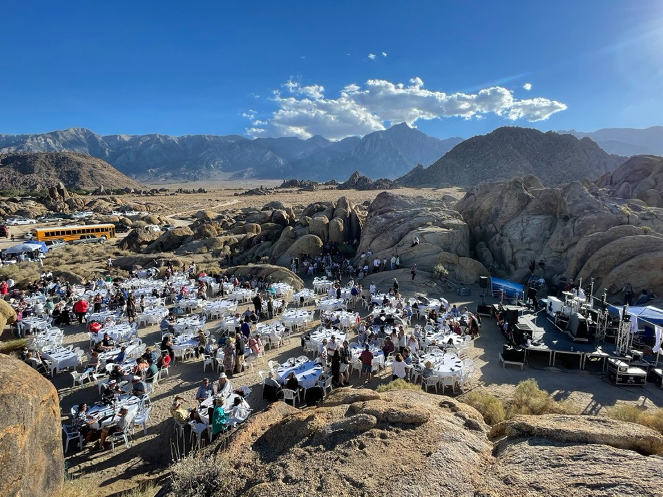 The dinner was served in the Lone Ranger Canyon in the Alabama Hills. The Hills have been the site for many Western and Sci-Fi movies and shows going back decades to the early 1900s.