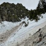 Further information revealed that two individuals from the Tahoe area came to Onion Valley to rock-climb and ski. The male/female pair set out around 9:30 a.m. to ascend, then ski a prominent canyon on the northeast side of Independence Peak, near the Kearsarge trailhead. After climbing for several hours they heard, then saw, an approaching avalanche. Both were caught up in the moving snow; the male skier was able to grab some rocks until the snow passed, while the female was carried out of sight down the canyon.
