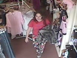 The owner described the suspect as a female white, 5’7” tall, about 140 pounds, straight long dark colored hair, wearing a grayish fur coat, pink colored short sleeve shirt and what appeared to be loose fitting sweat pants with a floral design. The suspect then exited the business without attempting to pay for the stolen items.